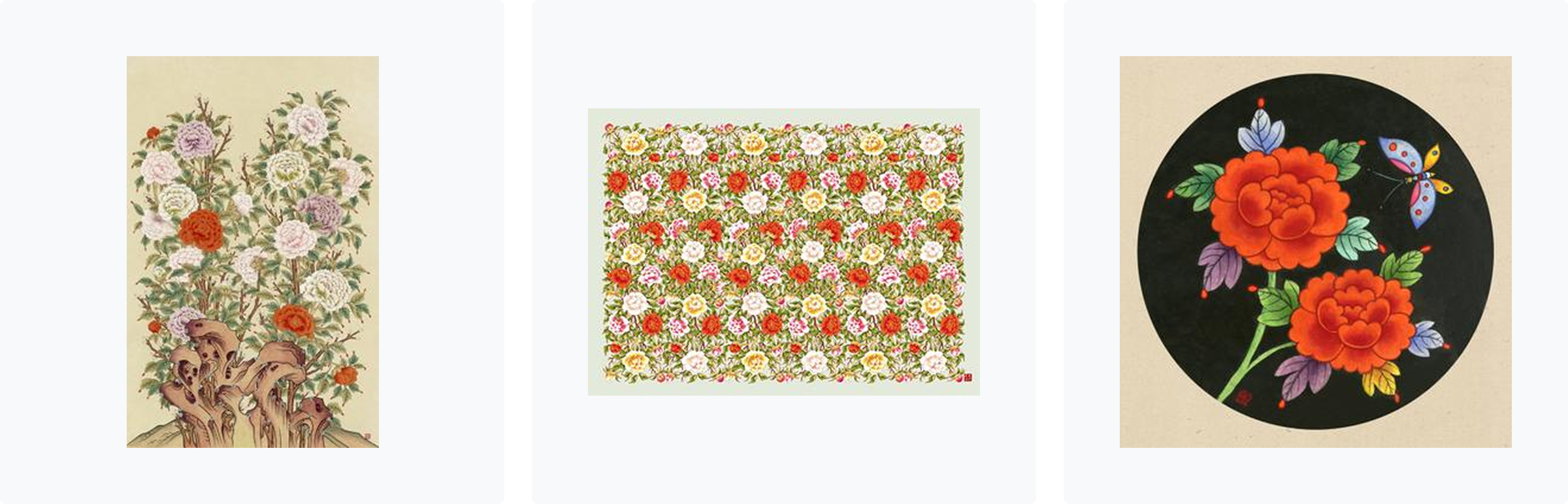 왼쪽부터 모란도, 모란도 1, 모란 Ⅰ