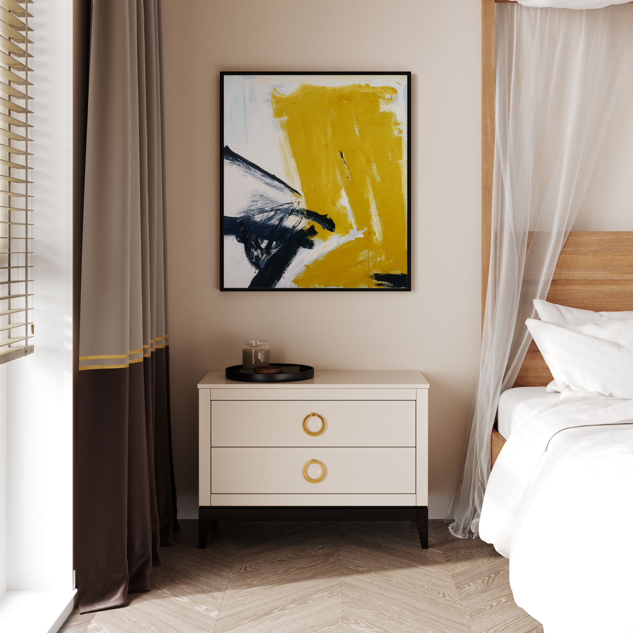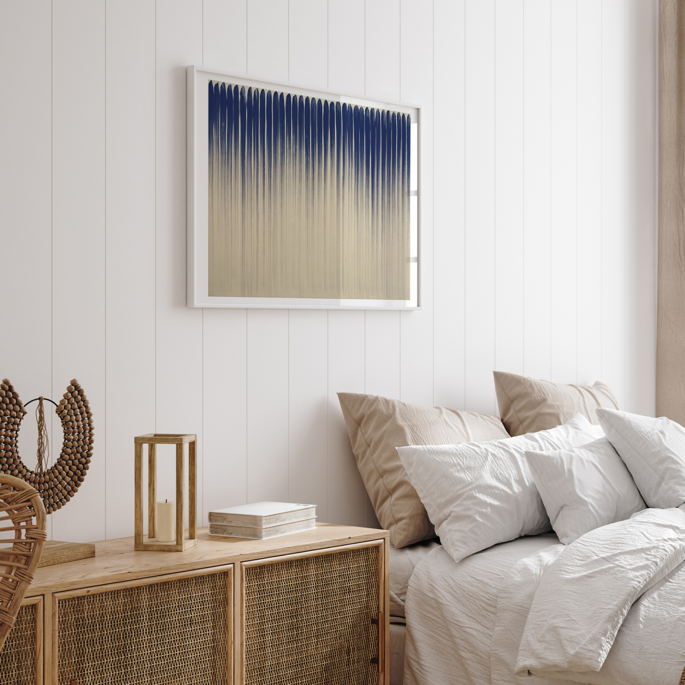 이렇듯 환하고 부드러운 색감만큼 활기찬 하인즈의 작품은 단조로운 빈 벽에 선명함을 더 해주기에 충분합니다.