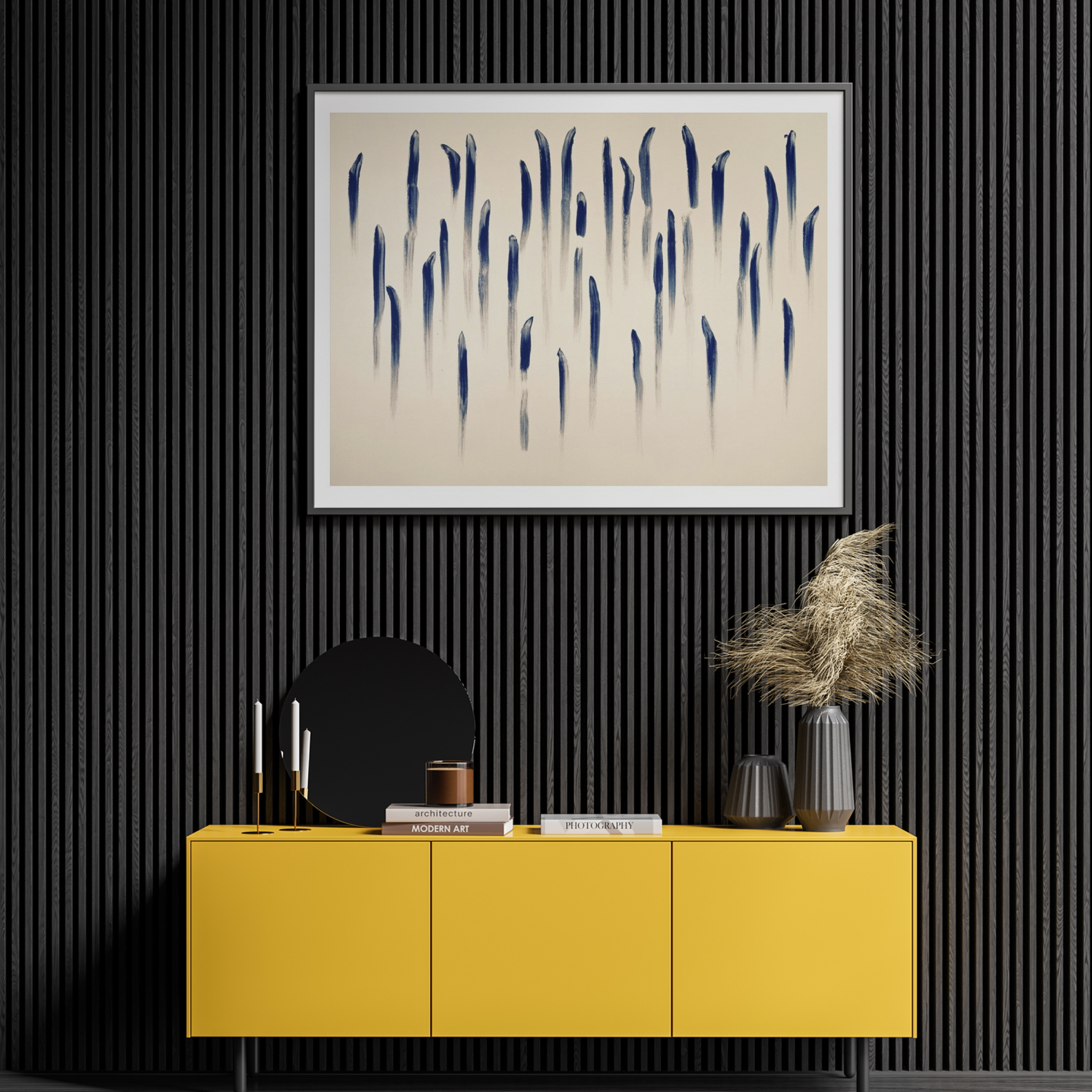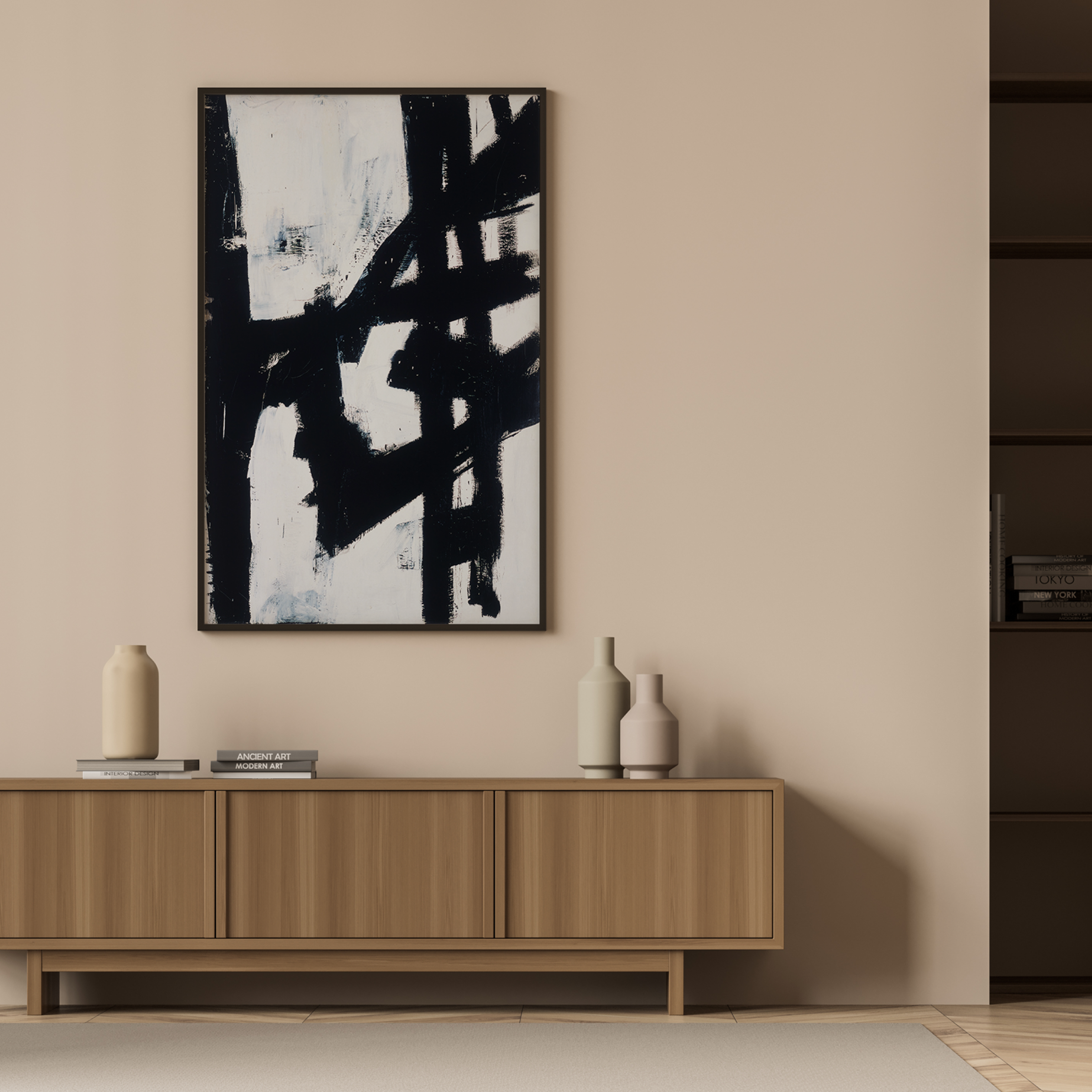 검은선과 하얀선으로 이루어진 굵은 필체, 그의 작품은 그레이톤의 벽지나 모던한 인테리어에 더욱 잘 어울리는데요. 클라인의 커다란 작품 한점으로 우리집을 꾸며보세요, 아주 멋스런 공간이 탄생할 것입니다.