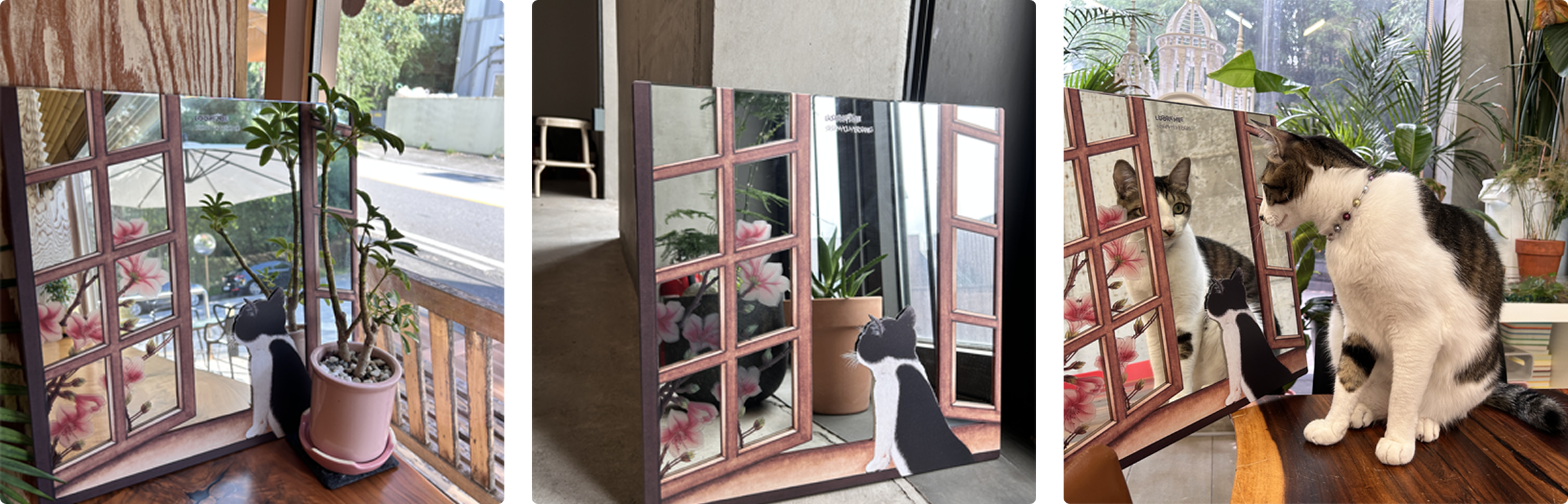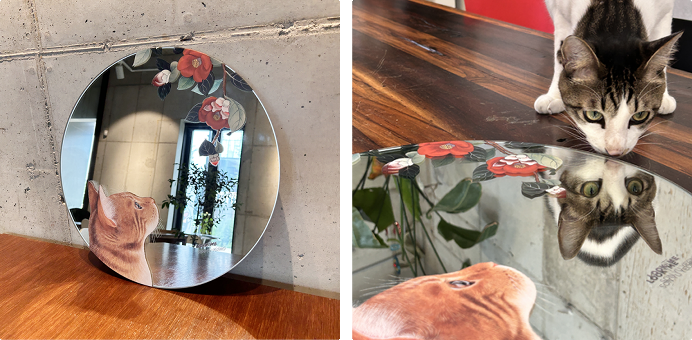 민화가 가진 전통미와 사랑스러운 고양이가 만난 아트&미러! 매일 아침 거울 속 고양이와 눈맞춤하며 사랑이 주는 따스함을 느껴보세요. 붉은 동백꽃의 꽃말인 '그대를 사랑합니다.'가 작품명이 되었듯이, 손유영작가가 늘 고양이를 통해 말하고자 하는 '사랑'이 가득 담긴 특별한 작품입니다.