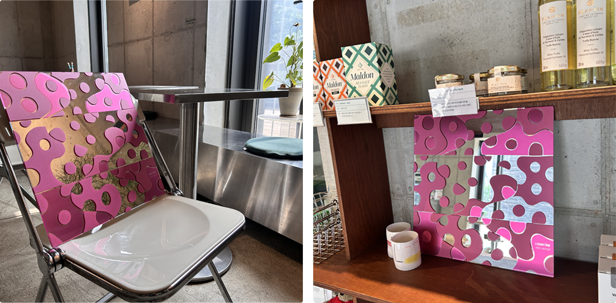 더할 첨(添)자 두개를 붙여 '더하다'라는 의미가 두 번, 첨첨(添添)은 '계속하여 보탠다'는 허욱 작가의 작품세계를 나타냅니다. 움직일 때마다 언뜻언뜻 비춰보이는 내 모습도 더해져 매일 또다른 작품이 되지요. 팝한 색감에 보면 볼수록 빠져드는 패턴!. 어디에서도 볼 수 없는 독특한 스타일의 아트 미러로 밋밋한 공간에 감성을 더해보세요.