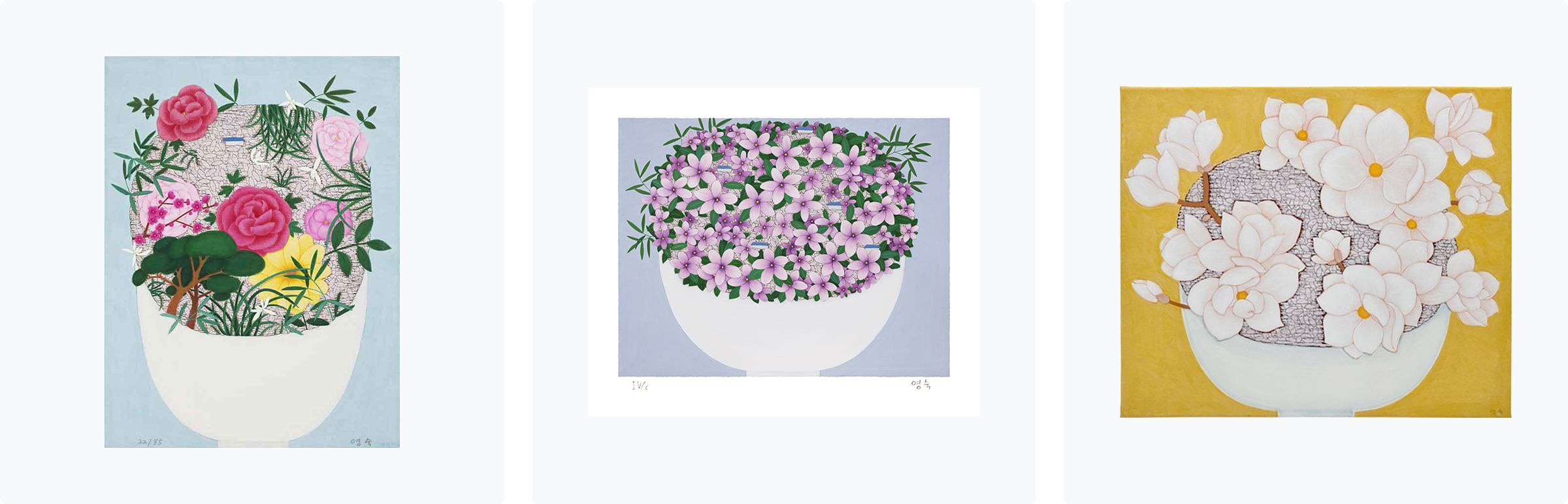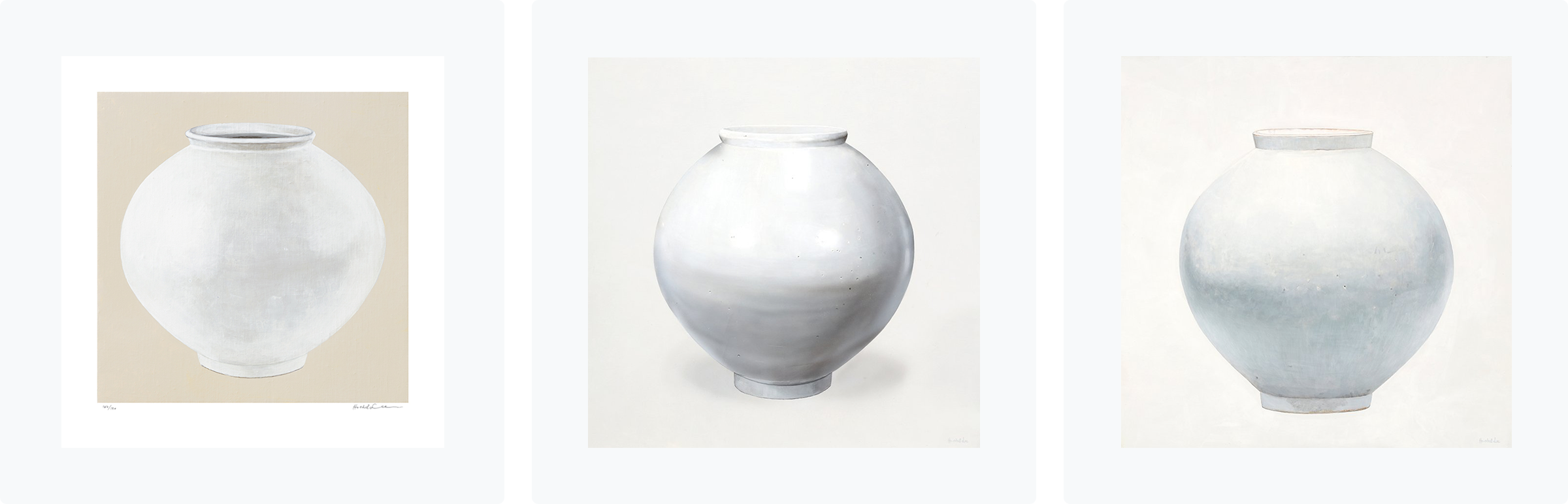 왼쪽부터 Encore 달항아리 판화 (150 Editions), Encore (앙코르) 달항아리 Ⅳ, Encore (앙코르) 달항아리 Ⅸ