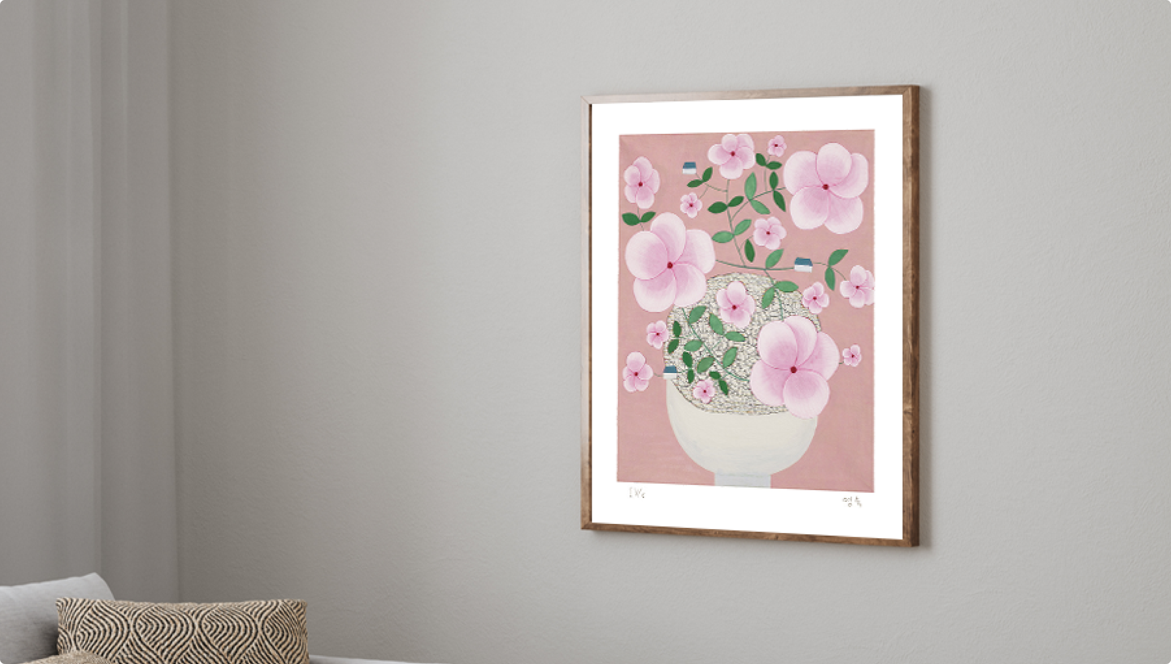꽃을 꽂는 대신 둥그런 '달항아리'에 단아하고 예쁜 꽃을 가득 채워, 우리의 삶이 더욱 행복해지길 바라는 마음을 담았습니다.