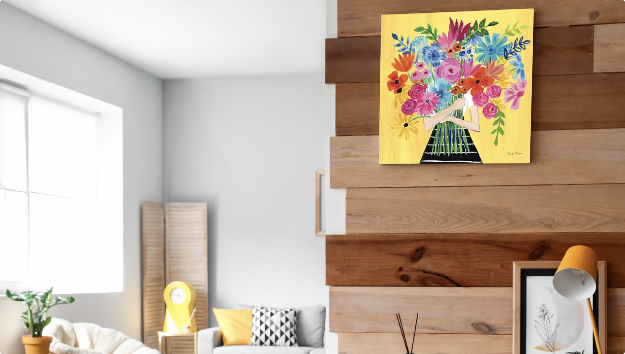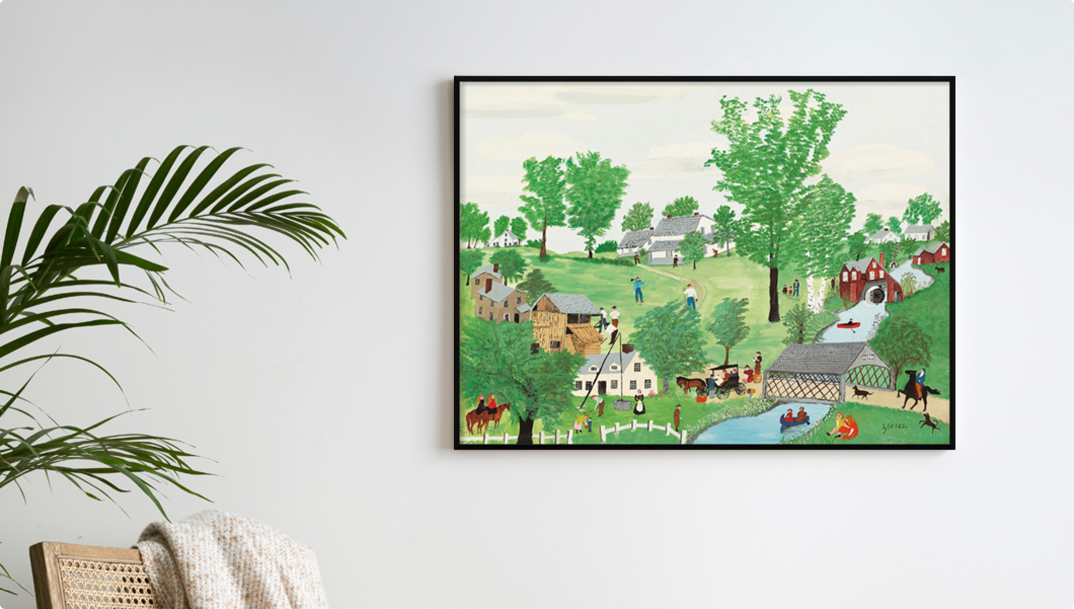 자연스럽고 따뜻한 분위기, 자연 소재 활용한 편안한 컨트리 공간에는 따뜻한 색상의 풍경 작품이 산뜻한 느낌을 줍니다. 벽의 색상과 공간의 느낌으로 조화를 고려하면 좋고 대조적인 색상은 그림을