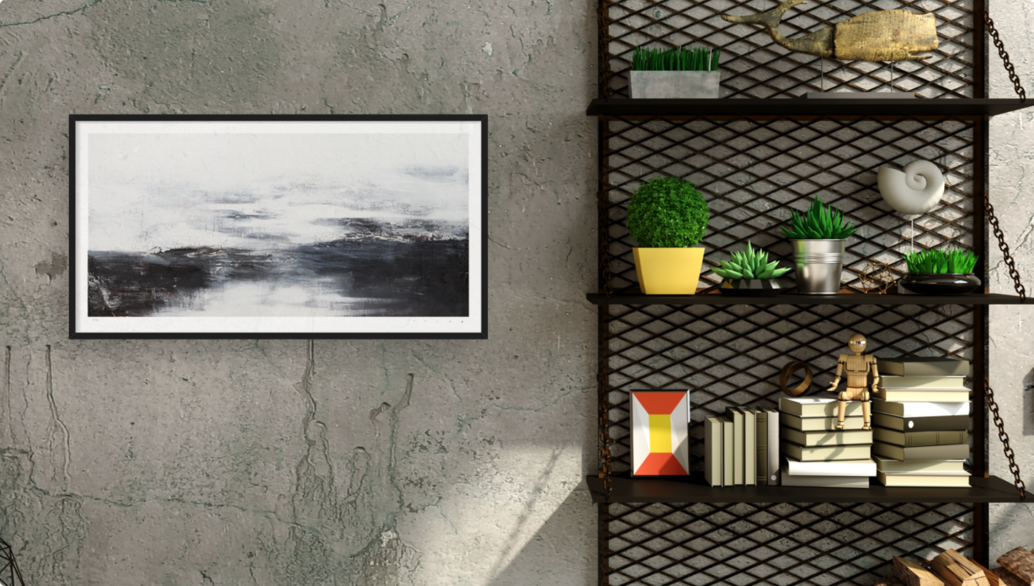 산업적인 느낌의 노출된 벽돌과 파이프, 거친 재료를 사용하는 인더스트리얼 공간은 톤 다운이 된 차가운 색조의 작품이 어울립니다.