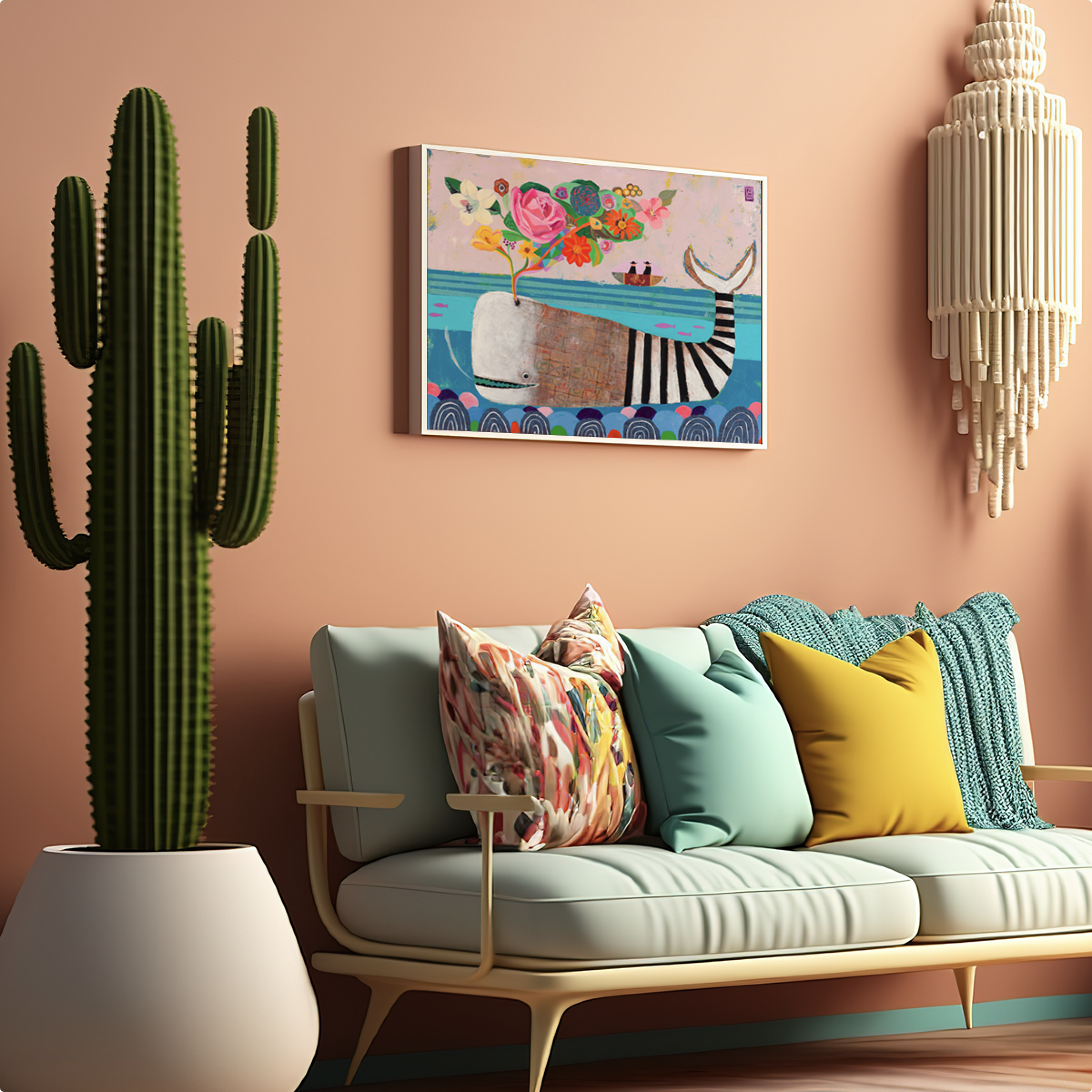 강조할 수 있지만, 공간의 분위기에 따라 시각적으로 부담스러울 수 있습니다. 컬러의 배치를 신경 쓰고 작품을 고르면 센스있는 연출이 가능합니다.