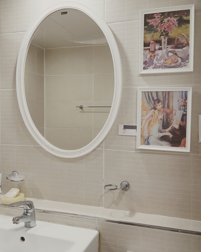 기존 거울이 화이트 프레임이라 비슷한 분위기의 화이트엣지 액자로 샀구요