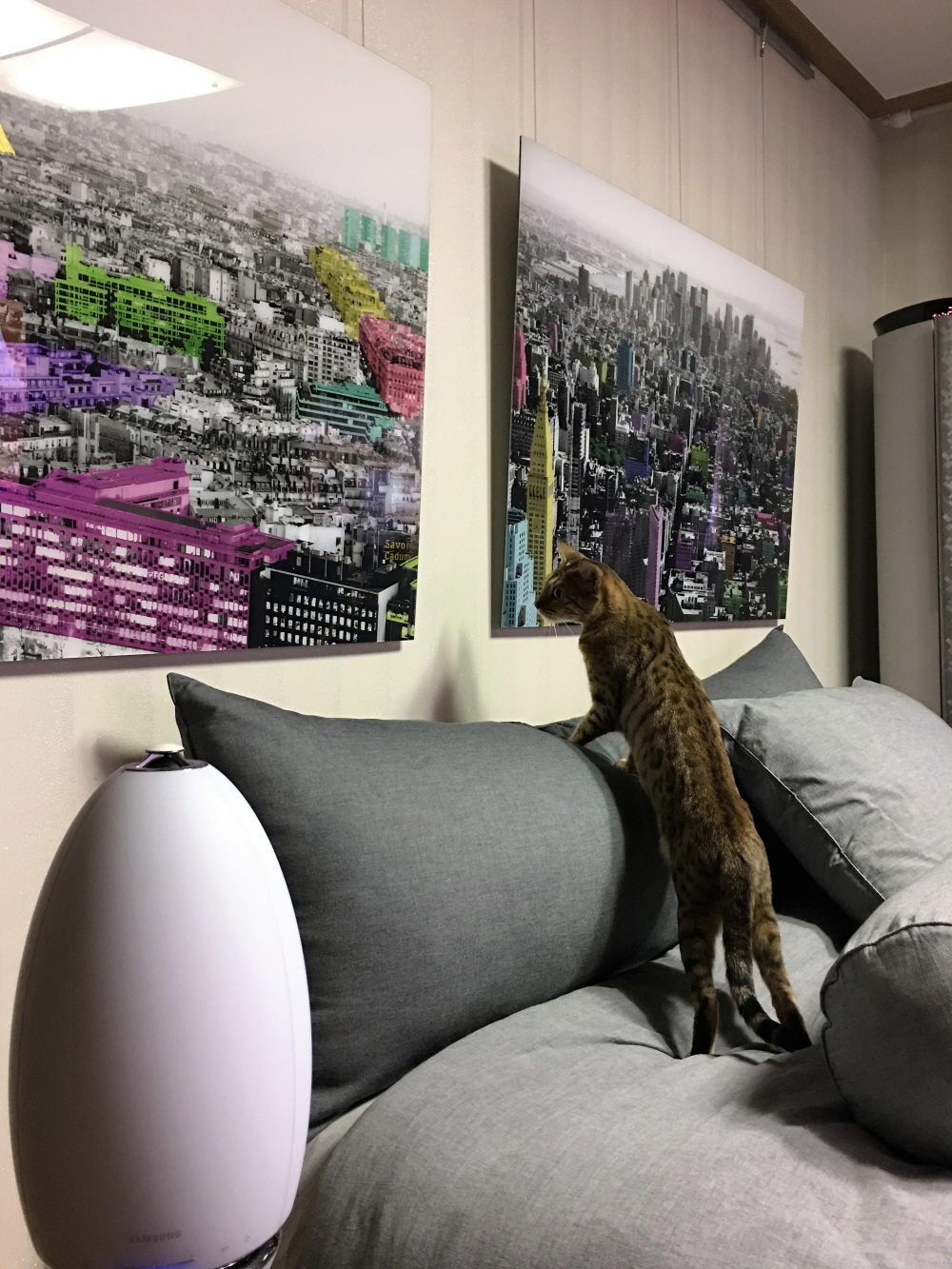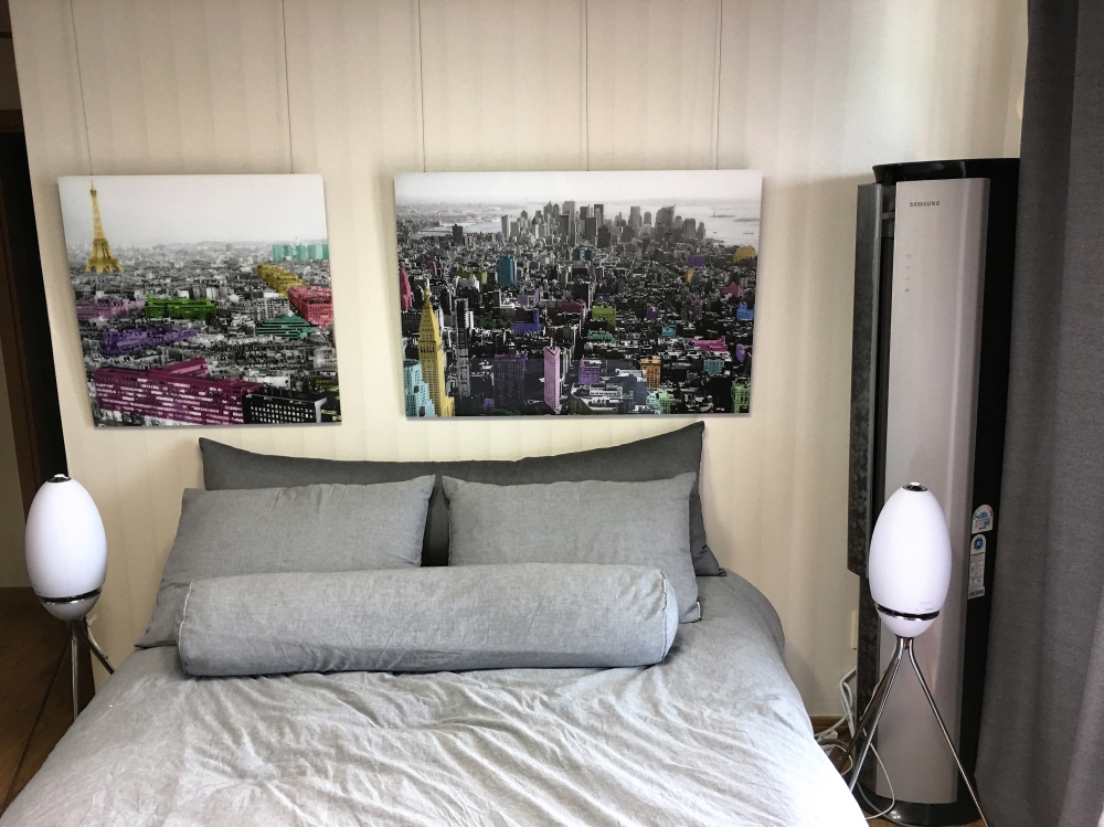 침대 벽면이 허전해서 안느 사진 두개 조합해서 걸었습니다. 침실 분위기와 잘어울려서 대만족합니다. 흑백 사진에 몇가지 컬러감있는 건물 사진 멋있습니다. 특히 컬러가 있는 부분은 메탈느낌이어서 빛이 반사되어 빛나는 것처럼 보입니다. ^^