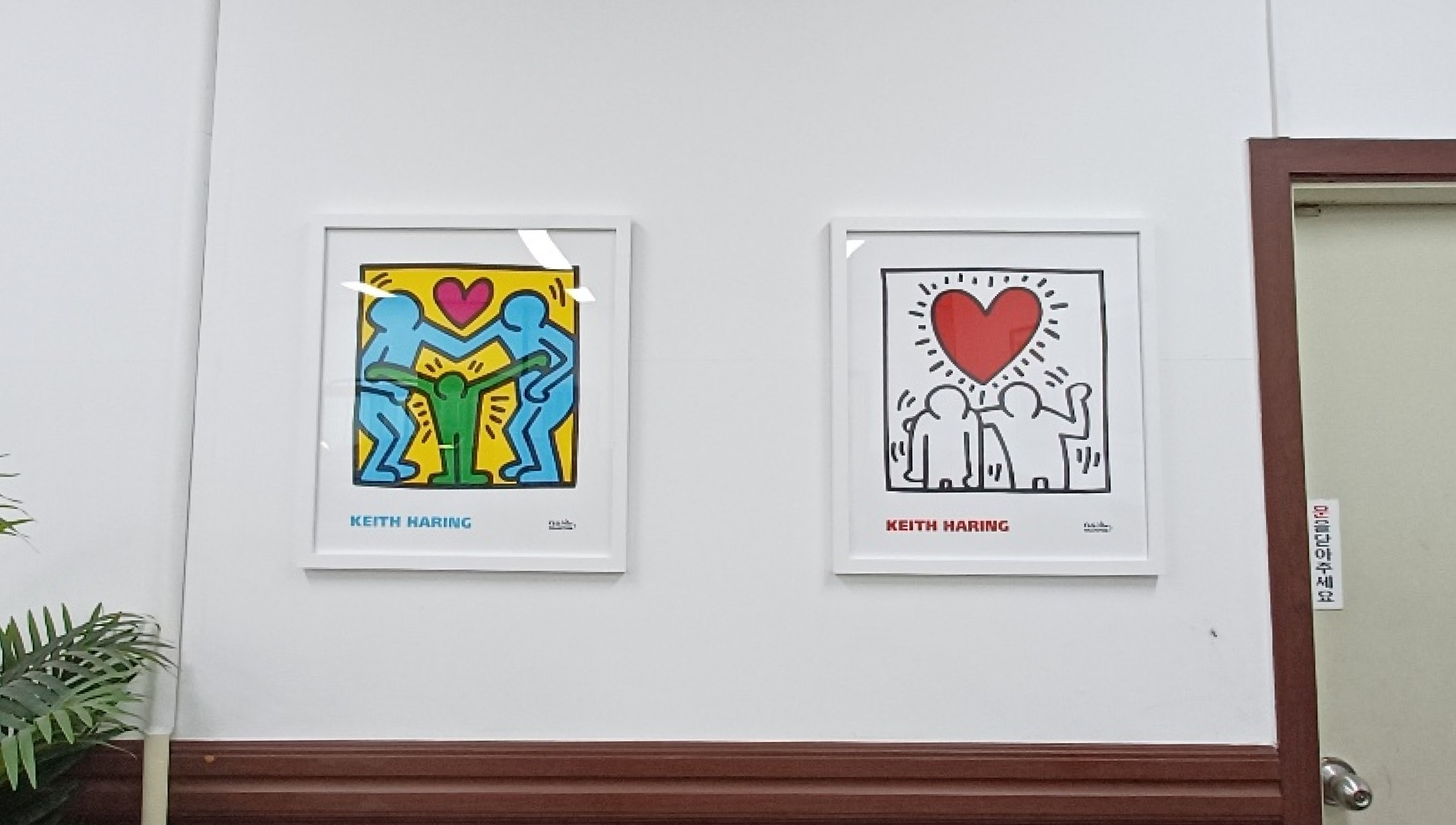 KH11 - 키스해링 Keith Haring (원목)우드화이트 2.5 액자포함 사이즈 53.8 X 58.9
